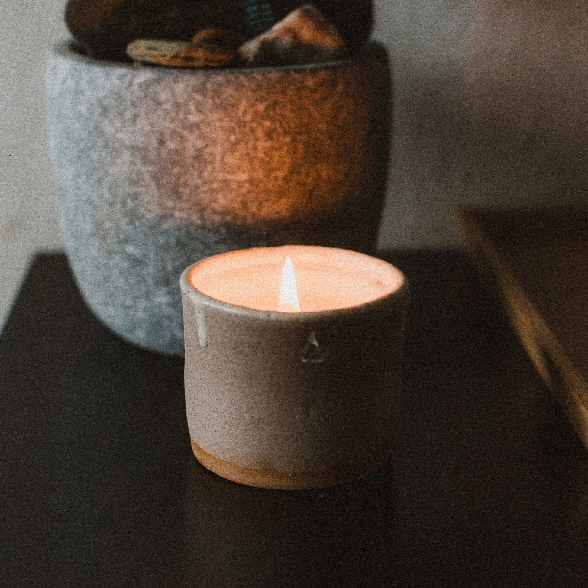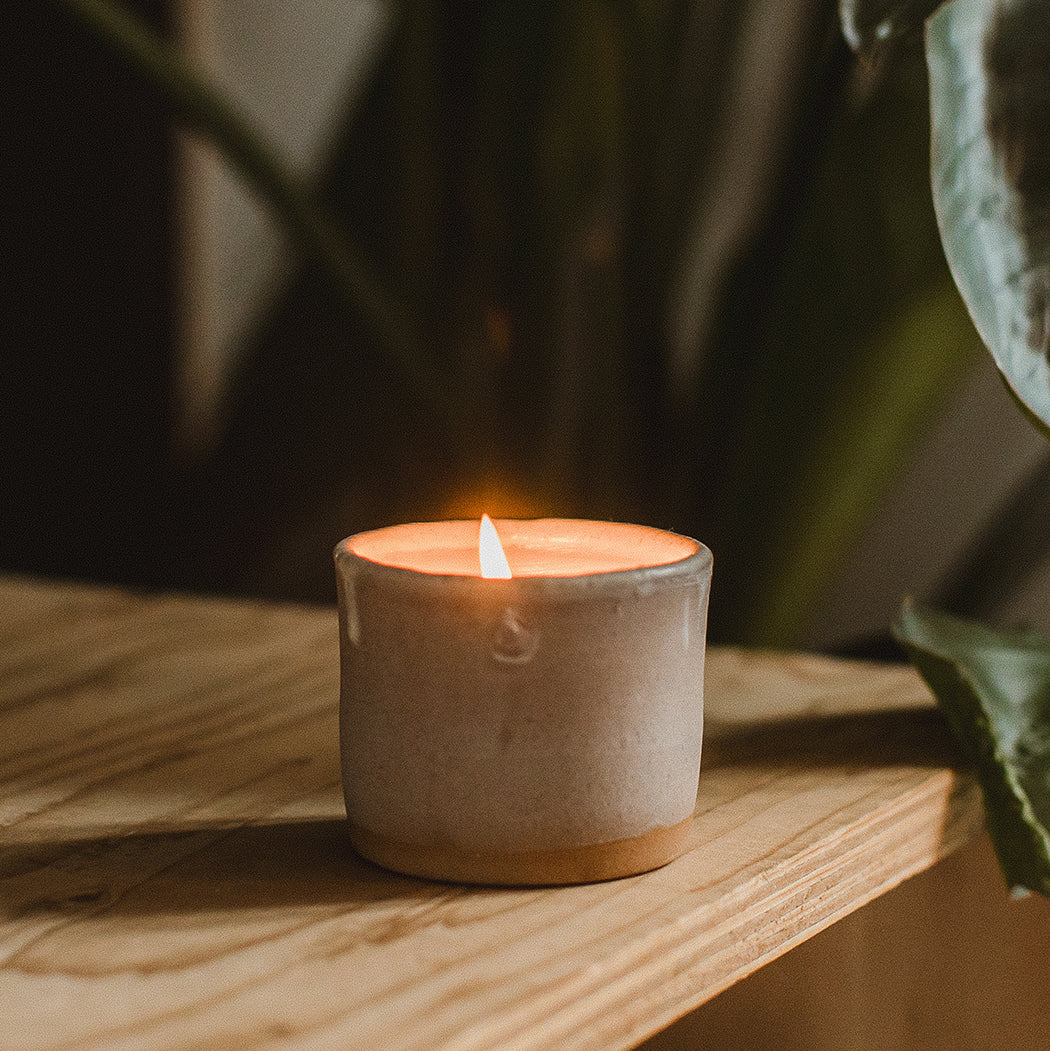 A stunning Earthen-Ware candle, made by hand, from clay foraged in Cornwall. This is truly more a work of art then a candle.