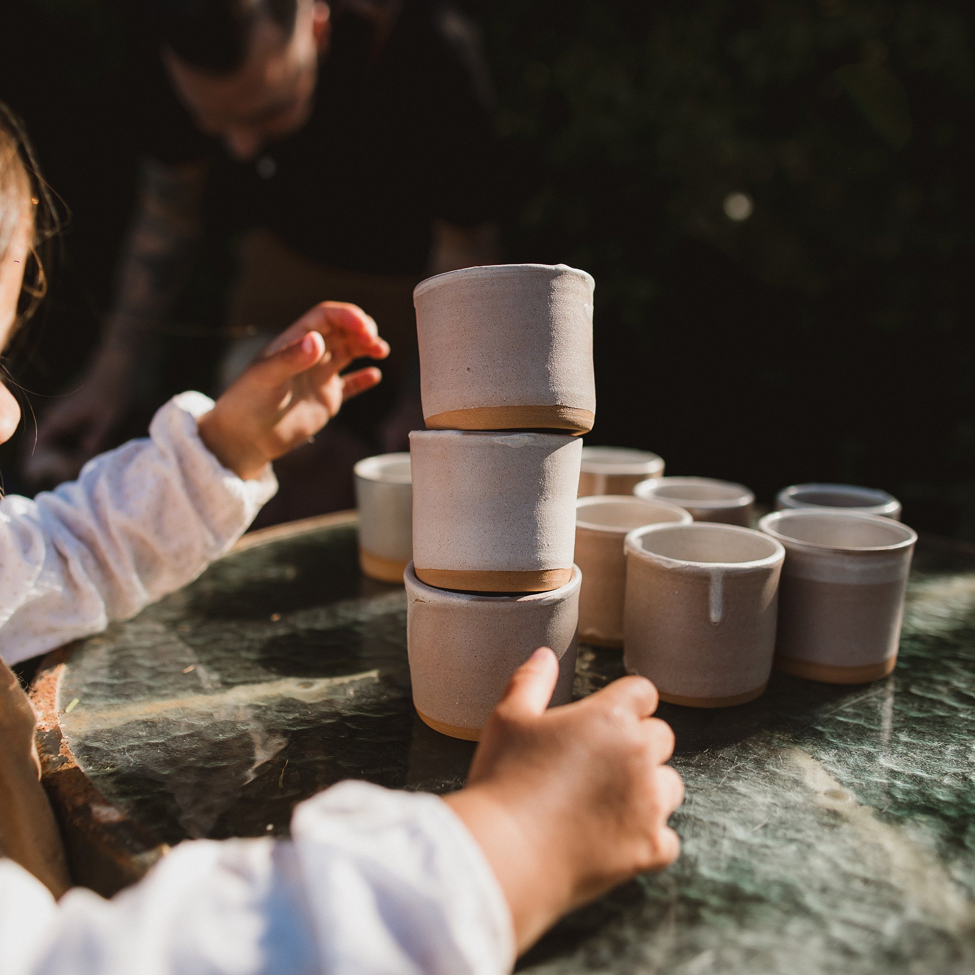 Shayla Wongwichien is a Thai-Canadian ceramicist living on her Husband’s ancestral farmland in Halwyn, Cornwall, with her two children. Working from her summerhouse studio with views over the Camel Estuary, Shayla has created these unique candle vessels to Kat and Ash’s brief from wild foraged clay, and a glaze made from Blackthorn ash fired in Shayla’s studio wood burner, Cornish stone, quartz and rain water.